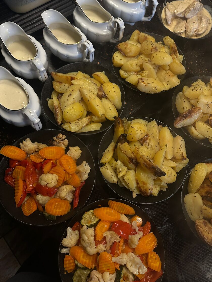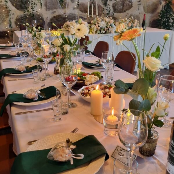 ✨ pilnu apkalpošanu, traukiem, galdautiem un salvetēm,